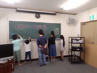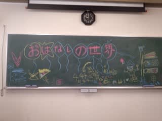 いつも視聴覚室の黒板に、今月のタイトルを子どもたちがすすんで書いてくれます