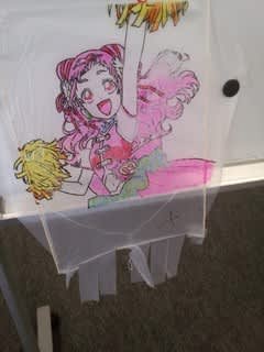 世界に1つだけの自分だけのオリジナル凧の出来上がり・・上手に揚げるポイントとやってはいけない注意もご指導いただきました。