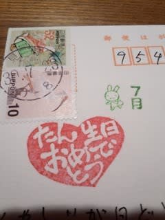 7月生まれ、お誕生日おめでとうの絵手紙です。