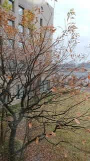 市役所食堂から見た景色・・「葉っぱのフレディ」の絵本の世界のようでした。