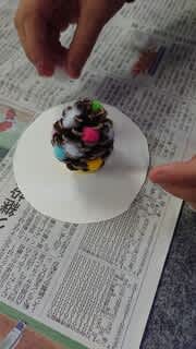 みんなで松ぼっくりを使ってXmas飾りを作りました