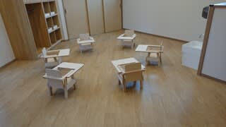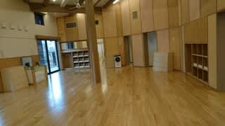木をふんだんにに使い、未満児には、やわらかな床材が使われ床暖も・・小さなお子さんに配慮した施設でした。