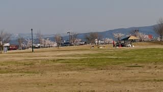 パティオにいがた芝生の広場ではテントを張るグループもワンちゃんのお散歩する姿も凧揚げする人の姿も見られました