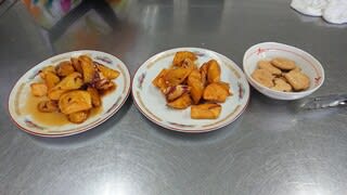 そして私たちスタッフには、フードバンクみつけさんから頂いたさつま芋の大学芋をその場で調理
