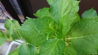 これはおばあちゃんが残してくれたアジサイ「隅田の花火」・・花芽が顔を出し始めました