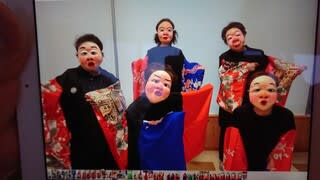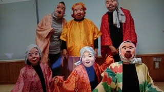 こんな手作り衣装とお面をつけて老人福祉施設の慰問を続けられているそうです。