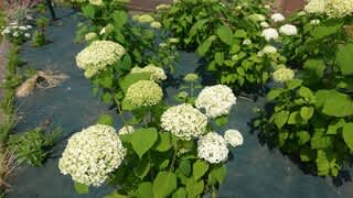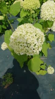 駐車場内のポケットパークに「アナベル」」が咲き始めました。