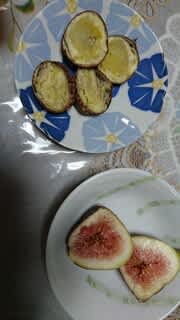 イチジクに栗・葡萄数種・秋の枝豆等々・・イチジクは夫の大好物で早速お供えしました