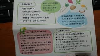 献立とふれあいレシピ、アスパラ菜(オータムポエム)の栄養価等々も記載されていて、しっかり食育できていました