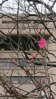 本会議に臨む前、市役所登庁時に正面に植えられている「ブラジル・マイリンケ市」からの記念樹の梅がほころび始めていました