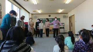 3月で公民館から他セクションに移動になった職員に「おはなしの会」から花束の贈呈をさせていただきました。