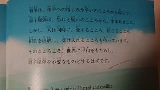 「戦争は、相手への憎しみや争いのこころから起こり、原子爆弾は恐れと疑いのこころから、生まれました。
