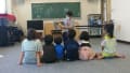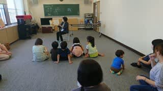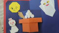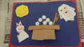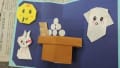メンバーが選んだ絵本「どうして あめがふらないの」「わたしはかわいい マヌルネコ」「カメレオンのやんとん」そして「おつきみおばけ」の絵本を読んだあとみんなで飛び出るおつきみ工作