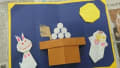 オバケのお顔もうさぎのお顔も、お月さまのお顔もみんなそれぞれ個性が光っていました。お月様の中にうさぎさんを描いたお友達もいました