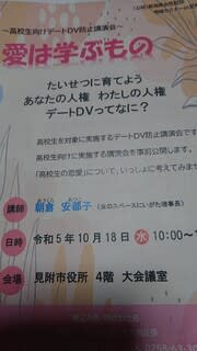 交際相手間の問題だから表に現れにくい問題かもしれないけれど、身体的暴力・性的暴力・精神的暴力・経済的暴力・社会的暴力などがあり、若者の人権が守られるように・今後の生き方に大きく関わってくる可能性のある「デートDV被害」について、大人たちが実態を知り予防できたらと強く思います。