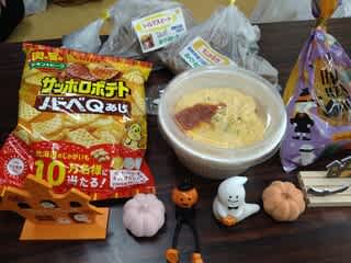 今日はお子さん限定で<ブエナビスタさんのオムライス>に調理ボランティアさん手作りのハロウィンカップケーキ・おぐりはーとさん提供のさつま芋+フードバンクみつけさん提供のお菓子