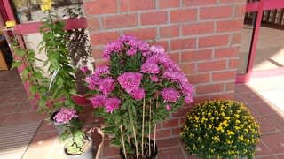 玄関では地域の人が育てた菊の花が出迎えてくれました。