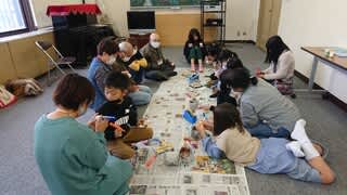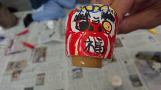 絵本のあとはみんなで起き上がりこぼしづくり。