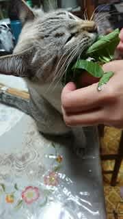猫は青菜を食するのですね。胸焼けしているのかなって思いきや、娘曰く「猫は青い葉食べるんだよ!」って
