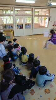 子育て支援センターにて、メンバーの読み。今日は一歳児の親子さん(お家でも読み聞かせをしてほしいな)