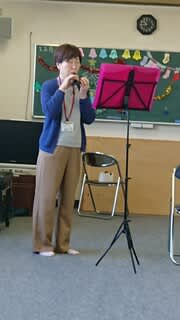 読み聞かせのあとは・・メンバーのオカリナでXmasソングを演奏してもらいました。