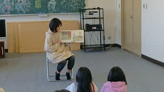 今町公民館に入ってまず驚いたのは、子どもたちが黒板に描いてくれたタイトル