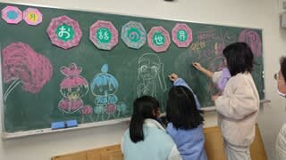 始まる前の黒板のタイトル描きもずっとずっと子どもたち主体で描いてくれています