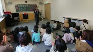 子どもたちが徐々にマジシャンに近づき「エ~」「なんで〜」って不思議な世界に引き込まれていました