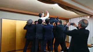 発起人代表挨拶やご来賓のお祝いの言葉、現団長からの記念品の贈呈、見附市消防団歌やしまいには胴上げなど、それはそれは先輩から後輩へと受け継がれていく「絆」を感じさせてくれる祝賀会でした。