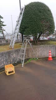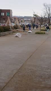 ですが・・市役所の冬囲いを取り除く作業が進めらてていました。