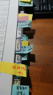 分厚い予算書・・関係部分をチェックする上で、マーカーペンと付箋は欠かせません