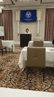 今日の講話者は前県議で妙高市倫理法人会会長の秋山三枝子さん。