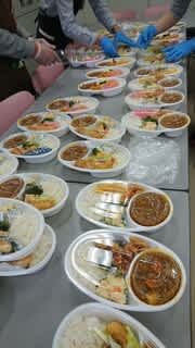 カレー班にポテトサラダ班・エビフライ班にフルーツサンド班。