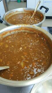 私はカレー担当・・大鍋2ついろいろなスパイスを入れて・・愛情スパイスもたっぷりです