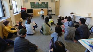 小学生・中学生・黒一点のメンバーの読み聞かせのあとは「五丁目凧組」さんのご指導のもと、グニャグニャ凧づくりのご指導を頂きました。
