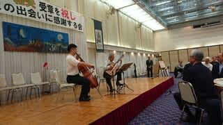 今日は磯田長岡市長を初め、ギター奏者の畠山先生・チェロ奏者の片野先生の演奏も祝う会に華を添えていました
