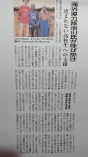 今日届いた地元新聞に、海外協力隊員としてアフリカのケニアに派遣されてる元市の職員(議長在任中に議会事務局長)だった池山さんが