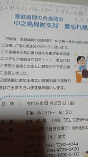 家庭倫理の会の長岡市 中之島見附支部 夏忘れ懇談会にお誘い頂きました