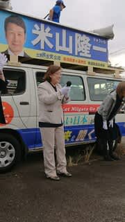 パートナーも力強い応援演説・・連合新潟小林会長も働く人の立場で激励のご挨拶を頂きました。