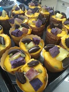 ジャストハロウィン、今日は手作りのパンプキンのカップケーキ付きです