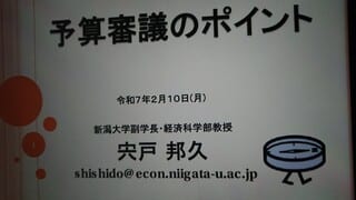 「予算審査のポイント」と題して、新潟大学副学長・経済科学部教授の宍戸邦久先生から講演いただきました。