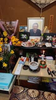 長岡の義理の姉から弟である夫のためにたくさんの供物をいただき、今日は市内のKさんがお参りに来てくださいました。