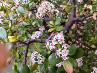 「金のなる木」にたくさんのきれいな花をつけていて、お花も見事だけれど「金のなる木」の金があったらいいな~ってね