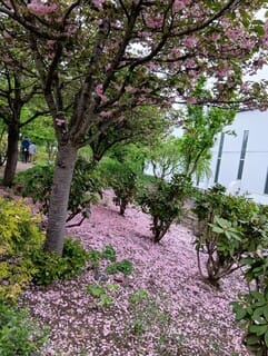 ロックガーデンまで散策してきました。八重の桜のジュータンもきれいでした