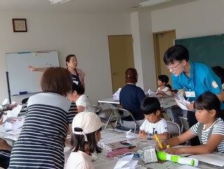 絵本のあとには「科学の万華鏡」の方が<飛び出す絵本>のご指導をしてくださいました。