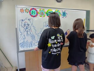 ボードに絵を描いてくれる子どもたち。