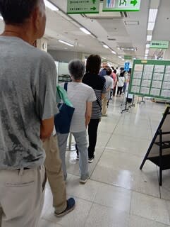 皆さんご先祖様の供養のためにお盆のお花の予約の列です。