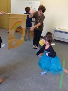 絵本のあとは・・紙飛行機を折って輪くぐりに挑戦