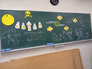 9月の「おはなしの世界」・・今日の黒板はお月見バージョン