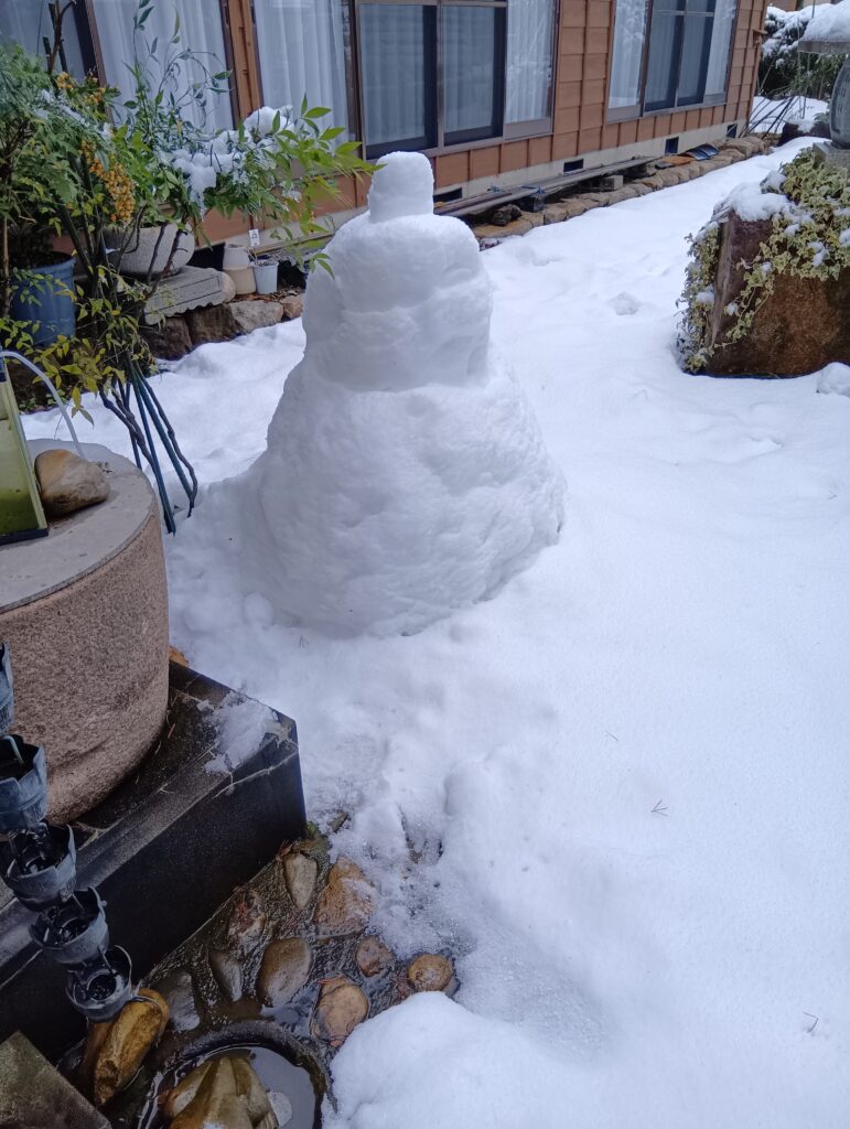 可愛い雪だるまに見送られて見附駅から公共交通です。